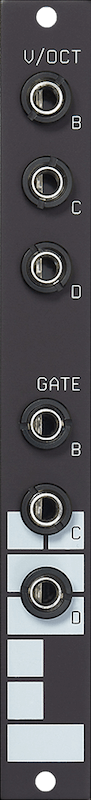 The slim but handsome Vector Wave Expander module, adds 3 extra V/Oct and Gate inputs to the Vector Wave.