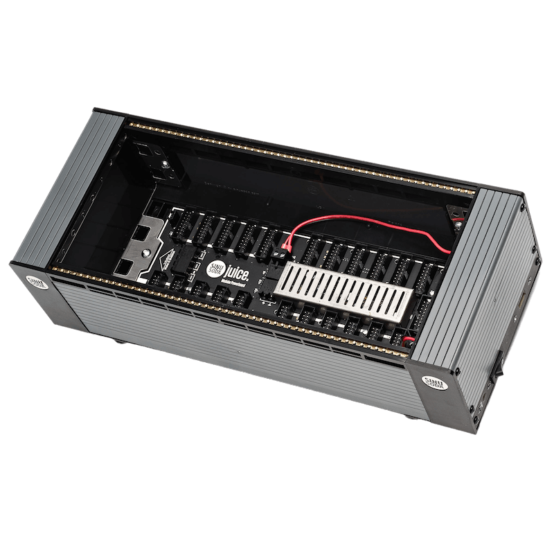 The Can is Sinusoda’s 3U 52 HP case that comes with Juice Powerboard, Straw power inlet and 60W power brick. Comes in parts and ready for self-assembly. Additional vertical and horizontal connectors of the casing system included. It’s a starting point for a truly modular case for modular synths.