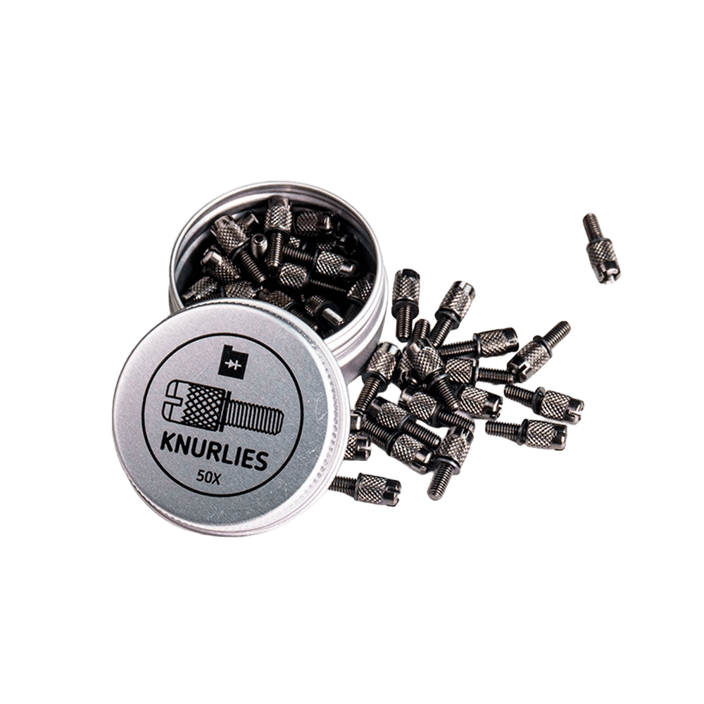 Knurlies can be fastened by hand, Phillips, slot or Allen. And brings a plastic washer already in place to avoid rack rash.