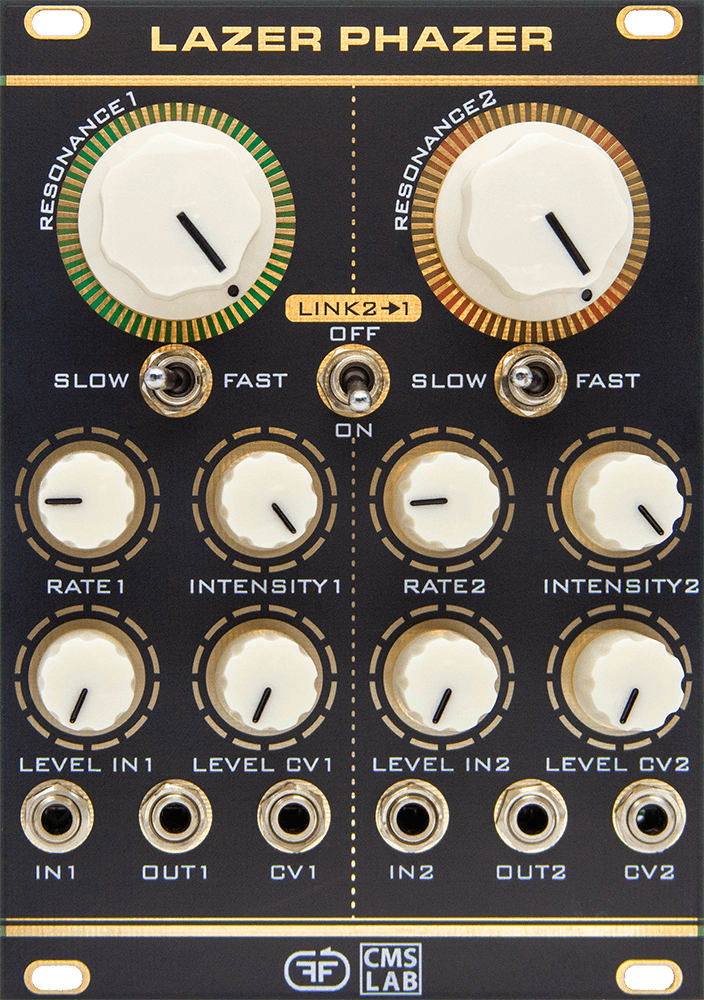 It can work as a stereo phaser, as a mono BI-Phaser, as two totally independent phasers, or as a 16stages phaser in series mode. Thath's not all, the LFOs of the phasers can work idendepently or linked. In inverted mode for stereo phase galore. The feedback can be modulated by internal LFOs, external CVs or both of them in the same time.