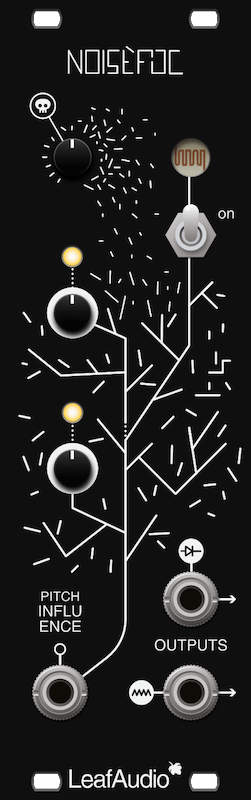 Noisefoc is an experimental Oscillator, good for noise and Pan Sonic style buzz sounds. It's nice as a pure sound source or as a base for Hi-Hat and percussion sounds. Noisefoc is a great learning project, in the manual the basic parts and their functions are explained. It is based around three CMOS NAND gates as oscillators, controlled by potentiometers and a light dependent resistor (LDR). There's an optical representation of the frequencies via LEDs, two mixing circuits (different sound via diode or resistor mixing) to mix the oscillators and a power starving function which makes the device completely out of control. It features a CV input (no 1V/Oct) for pitch influence via optocoupler.