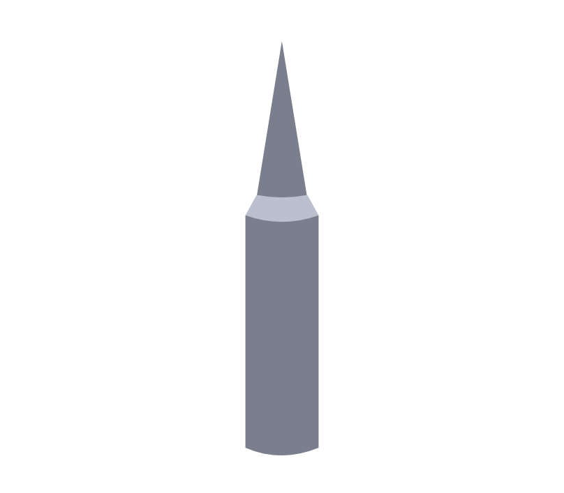 This pointed, cone-shaped tip concentrates heat in a small area, making it useful for precision soldering, especially in tight spaces.