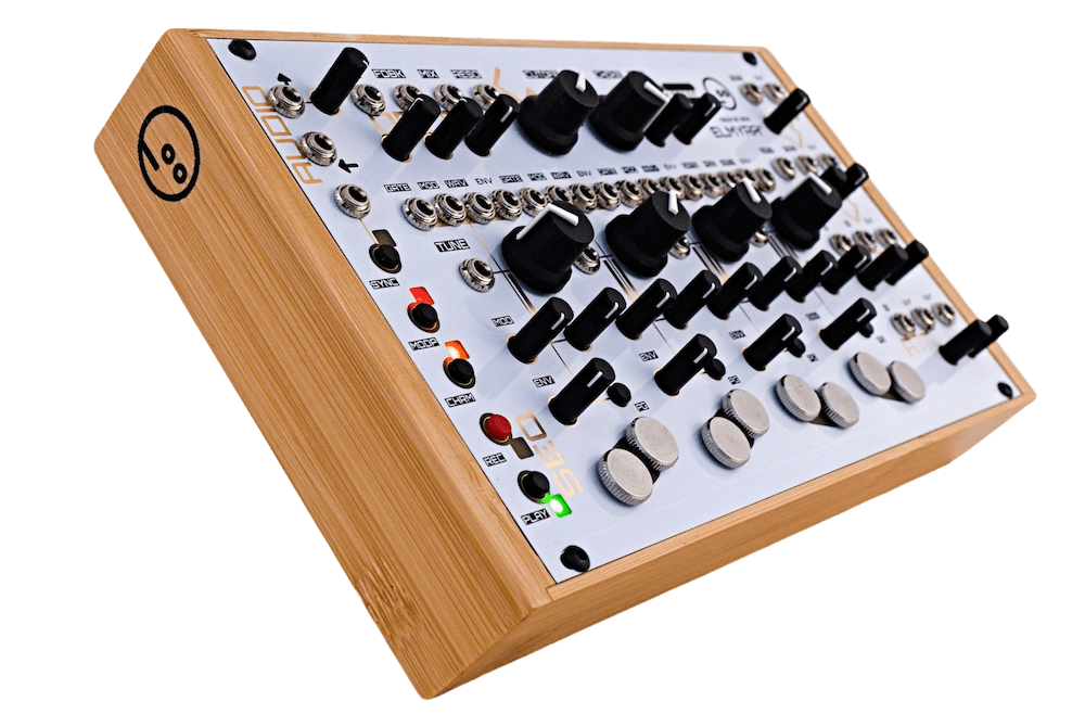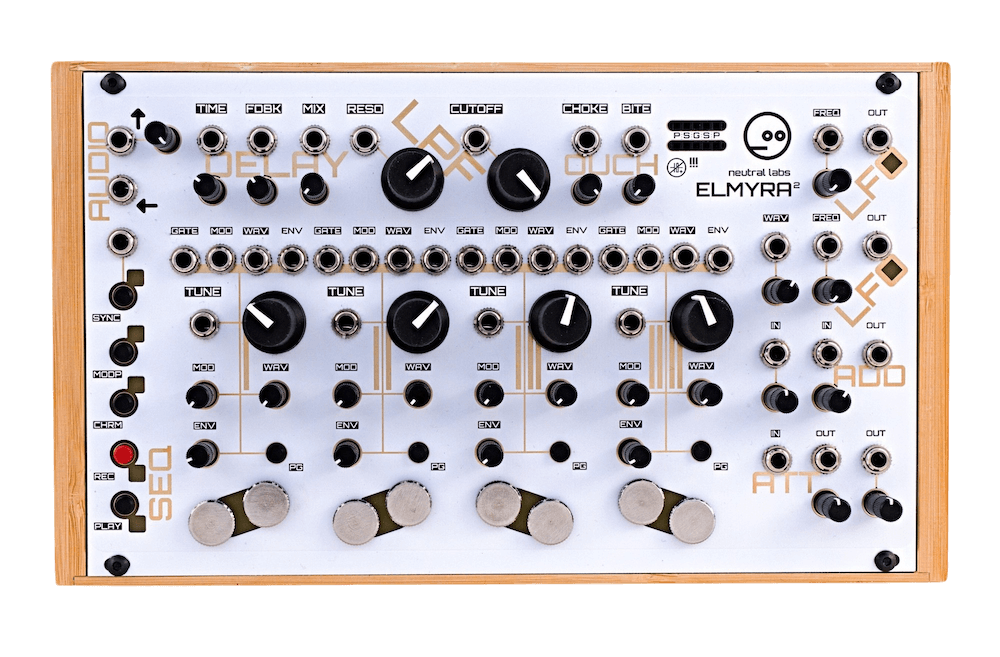 Elmyra 2 is a 4-voice digital/analog hybrid platform for microtonal sonic exploration, capable of creating anything from lush ambient soundscapes to gritty droning textures and shrieking noises, available as a 42 HP Eurorack module or semi-modular desktop synth. With 31 modulation targets, 4 polymetric sequencers, delay, additional per-voice effects, a choice of various filters, as well as onboard LFOs and utilities, it is essentially a purpose-built small modular system in itself. A set of preset cards (included) or electronic components like capacitors or diodes can be plugged into the front panel in order to change the sound character.