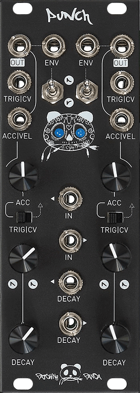 Punch is the ultimate VCA-DECAY module for Eurorack! Specially designed to generate dynamic percussive sounds but also capable of basslines, leads, envelopes and more. The VCA has a built in voltage controlled Decay envelope that can be turned from smooth to more aggressive exponential responses and can be activated with triggers, gates or cv’s. Punch also features accent inputs on each channel, for more interesting and dynamic sounds and envelopes. Punch v3 features two modes per channel to play, with a dedicated switch control: “vintage style drum machine mode” and “dynamic cv mode”. Punch is capable of creating AM sounds with control voltage on the “amount”. Each envelope can be inverted via dedicated switches on the front panel. If you use an inverted envelope alongside the accent input you can create ducking effects like side-chain compression. Check the official demo here and here a DivKid video about Punch.