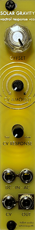 The Solar Gravity is an analog vactrol-based VCA designed to bring the lovely response of optocouplers into the realm of clean, performance-based Eurorack VCAs. Starting with this simple concept, the Solar Gravity utilizes some neat active circuitry to significantly reduce the bleed inherent in vactrol-based VCAs and to provide the user with lots of control over the level, direction, and response of incoming control voltage.