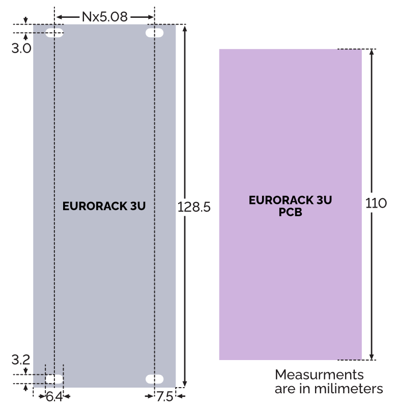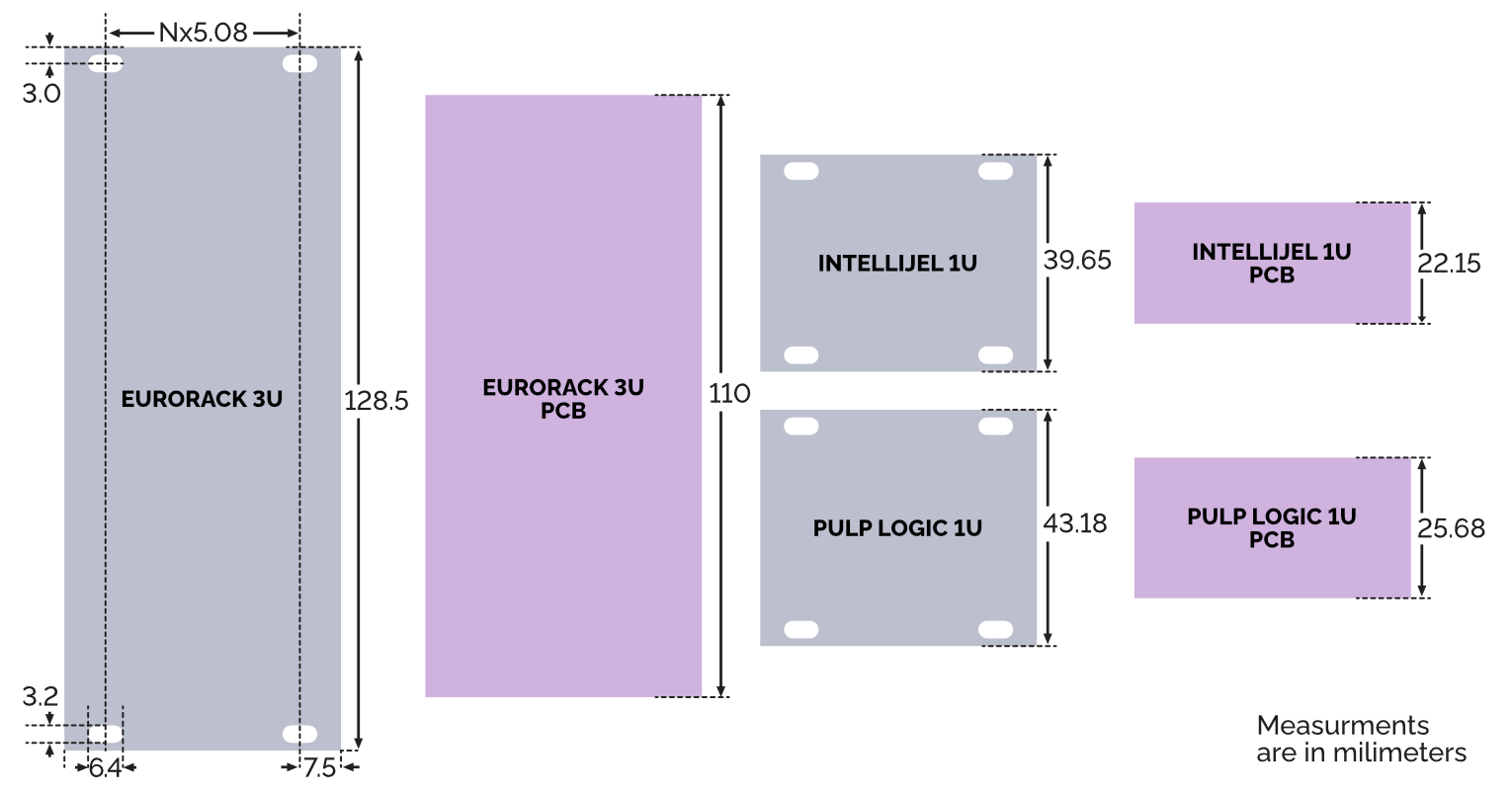 Intellijel 1U, and 25.68 mm for Pulp Logic 1U. Smaller PCBs can also be