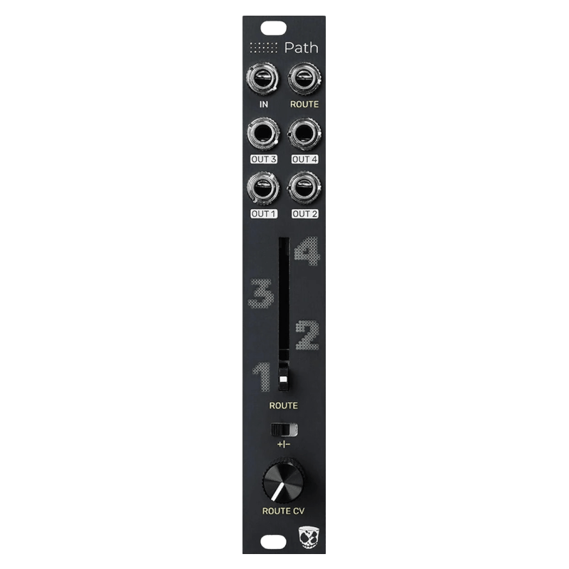 Path is a compact 4-channel interpolating router, developed with Ben Wilson (DivKid), and inspired by our previous module, Trace. While Trace blended signals, Path flips the concept—routing one input to four outputs with smooth, slope-based transitions.